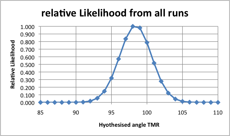 angle TMR of about 5 degrees, from which we can compute P(d|H) for each
